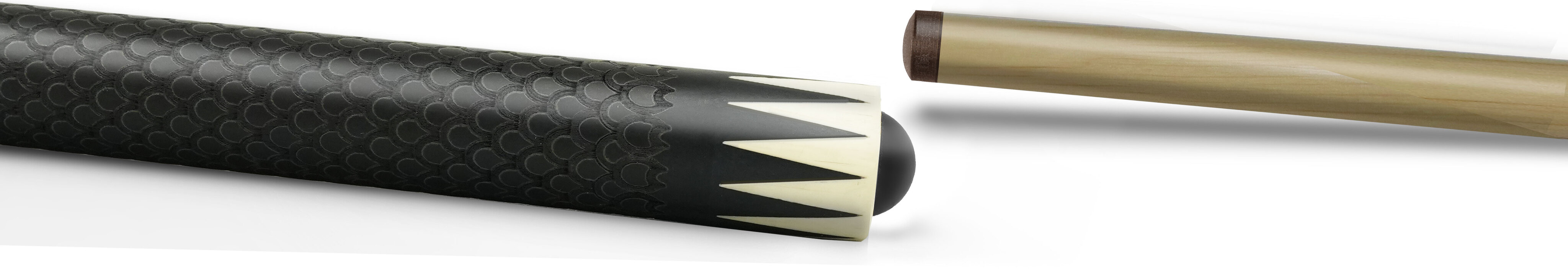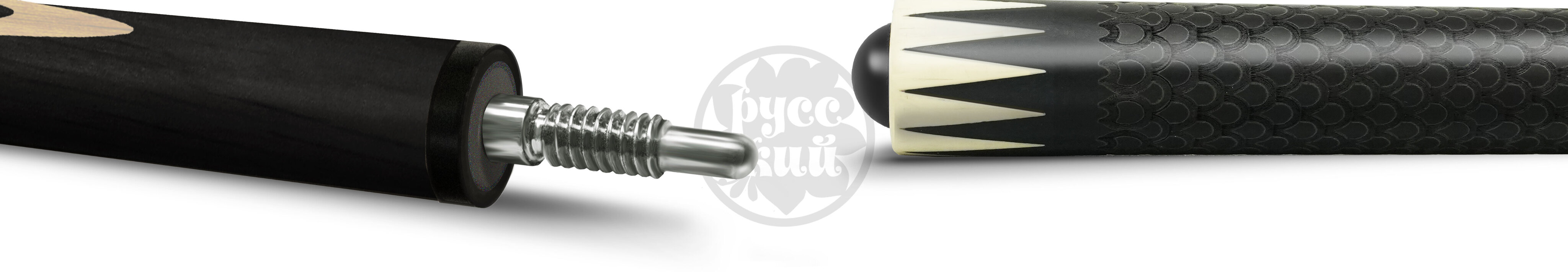 Особого внимания заслуживает турняк: его поверхность украшает филигранная гравировка, стилизованная под драконью чешую. Этот визуальный ритм не просто украшает инструмент, он превращает его в произведение искусства, где каждая деталь дышит совершенством. В свете софитов игра света на фактурной поверхности оживает, подчеркивая безупречный вкус своего владельца. Это не просто кий, это личный талисман, закованный в древесину и металл.
