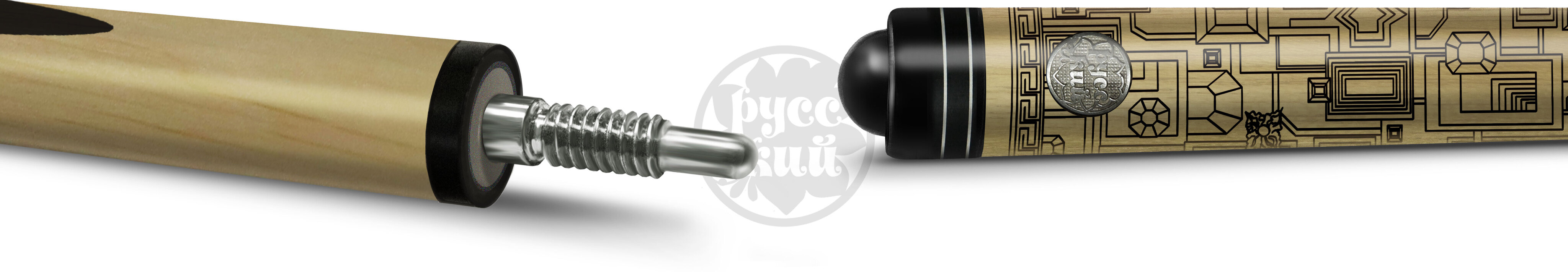 Кии «РУССКИЙ» хороши по своим игровым параметрам, они обладают высокими пружинящими свойствами, одновременно плотные и стабильные. Тонкие заготовки без склейки собираются четко, один к одному, и образуют ажурный рисунок. Запилы не только придают изящный вид изделию, но и совершенствуют игровые характеристики кия. В изготовлении шафта киев используется только высококачественный граб. Это жесткое по структуре дерево, идеально подходящее для ударной части кия по своим физическим свойствам. От шафта зависит качество игры, здесь аккумулируется энергия, позволяющая при ударе «выстрелить» шар. Геометрия шафта кия «РУССКИЙ» кроме идеальной прямолинейности имеет определенную заданную жесткость. Здесь соблюден важный баланс между «жесткостью» и «эластичностью». «РУССКИЙ» полируется особым способом и специальным составом, который наносится в несколько этапов и слоев. Все модели кия «РУССКИЙ» проходят строгий технологический контроль на всех стадиях изготовления.