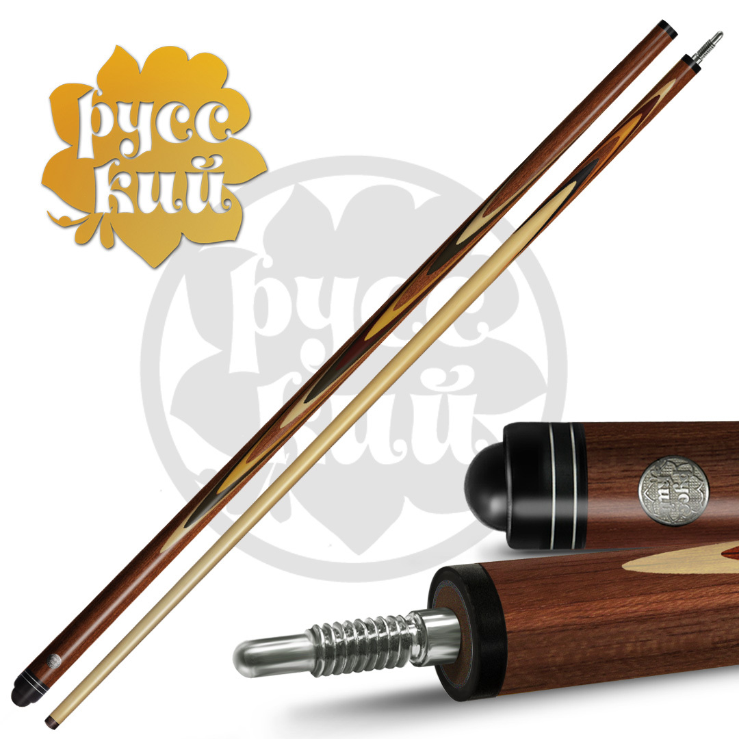 Кий «РУССКИЙ» - правильный кий, которому можно доверить свою игру. Бренд «РУССКИЙ» уже более 8 лет на рынке, за этот срок он собрал массу положительных откликов не только от покупателей-любителей, но и профессиональных именитых спортсменов! Постоянно расширяя линейку и улучшая качество своей продукции, сегодня мы представляем обновленные модели, соответствующие «золотому стандарту» киестроения! Запиленные новым способом кии «РУССКИЙ» обладают высокими пружинящими свойствами, одновременно плотные и стабильные, они имеют идеальную геометрию. В киях «РУССКИЙ» запил стал тоньше и длиннее, увеличенные лепестки придают большую жесткость кию и уменьшают вибрацию при ударе. Такой длинный запил сложен в реализации, зато обеспечивает хорошую плотность игровому инструменту. Длинна запила в среднем у склеенной заготовки составляет 33 см, а в готовом изделии 26 см. Запилы цельные, не склеенные, что тоже работает на повышение плотности и стабильности кия. Тонкие заготовки без склейки из разноцветных пород дерева собираются четко один к одному, образуя ажурный рисунок. Эффектные узоры не только придают изящный вид, но и совершенствуют игровые характеристики кия. Новая структура кия абсолютно монолитна и приближена к естественной структуре дерева. В изготовлении шафта киев используется только высококачественный 4-х сторонний граб. Это жесткое по структуре дерево, идеально подходящее для ударной части кия по своим физическим свойствам. От шафта зависит качество игры, здесь аккумулируется энергия, позволяющая при ударе «выстрелить» шар. Геометрия шафта кия «РУССКИЙ» кроме идеальной прямолинейности имеет определенную заданную жесткость. Здесь соблюден важный баланс между «жесткостью» и «эластичностью». В киях «РУССКИЙ» обновлены замки, сейчас они сделаны из двух видов металла, что способствует меньшему износу и большему сроку службы изделия. Разные металлы используются намеренно, разность в твердости обусловлена технической особенностью киестроения. Надежный замок гарантирует прочное соединение ударного наконечника и шафта, плотное соединение в месте стыка, обеспечивая идеальную скрутку и монолитность инструмента при игре. Финишная обработка этих киев тоже вобрала в себя все самые лучшие традиции. «РУССКИЙ» полируется особым способом и специальным составом, который наносится в несколько этапов и слоев. Поверхность дорабатывается до зеркального блеска, при этом кий не скользит в руке. Покрытие кия прочно и долговечно, а кий надежно защищен. Все модели кия «РУССКИЙ» проходят строгий технологический контроль на всех стадиях изготовления, ручная доводка каждого кия высокопрофессиональными мастерами обеспечивает неизменно высокие игровые качества профессионального уровня. Кии «РУССКИЙ» - кии для РУССКОГО бильярда, сделанные в лучших традициях РУССКИХ мастеров!
