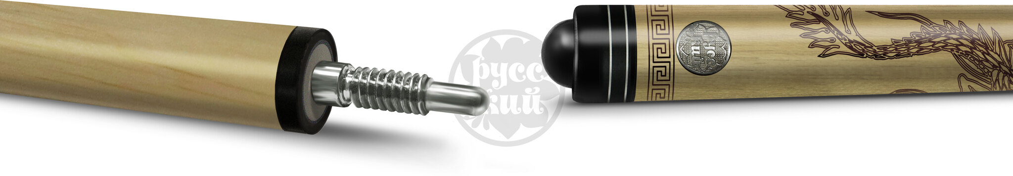 Кий «РУССКИЙ» - правильный кий, которому можно доверить свою игру. Бренд «РУССКИЙ» уже более 8 лет на рынке, за этот срок он собрал массу положительных откликов не только от покупателей-любителей, но и профессиональных именитых спортсменов! Постоянно расширяя линейку и улучшая качество своей продукции, сегодня мы представляем обновленные модели, соответствующие «золотому стандарту» киестроения! Запиленные новым способом кии «РУССКИЙ» обладают высокими пружинящими свойствами, одновременно плотные и стабильные, они имеют идеальную геометрию. В киях «РУССКИЙ» запил стал тоньше и длиннее, увеличенные лепестки придают большую жесткость кию и уменьшают вибрацию при ударе. Такой длинный запил сложен в реализации, зато обеспечивает хорошую плотность игровому инструменту. Длинна запила в среднем у склеенной заготовки составляет 33 см, а в готовом изделии 26 см. Запилы цельные, не склеенные, что тоже работает на повышение плотности и стабильности кия. Тонкие заготовки без склейки из разноцветных пород дерева собираются четко один к одному, образуя ажурный рисунок. Эффектные узоры не только придают изящный вид, но и совершенствуют игровые характеристики кия. Новая структура кия абсолютно монолитна и приближена к естественной структуре дерева. В изготовлении шафта киев используется только высококачественный 4-х сторонний граб. Это жесткое по структуре дерево, идеально подходящее для ударной части кия по своим физическим свойствам. От шафта зависит качество игры, здесь аккумулируется энергия, позволяющая при ударе «выстрелить» шар. Геометрия шафта кия «РУССКИЙ» кроме идеальной прямолинейности имеет определенную заданную жесткость. Здесь соблюден важный баланс между «жесткостью» и «эластичностью». В киях «РУССКИЙ» обновлены замки, сейчас они сделаны из двух видов металла, что способствует меньшему износу и большему сроку службы изделия. Разные металлы используются намеренно, разность в твердости обусловлена технической особенностью киестроения. Надежный замок гарантирует прочное соединение ударного наконечника и шафта, плотное соединение в месте стыка, обеспечивая идеальную скрутку и монолитность инструмента при игре. Финишная обработка этих киев тоже вобрала в себя все самые лучшие традиции. «РУССКИЙ» полируется особым способом и специальным составом, который наносится в несколько этапов и слоев. Поверхность дорабатывается до зеркального блеска, при этом кий не скользит в руке. Покрытие кия прочно и долговечно, а кий надежно защищен. Все модели кия «РУССКИЙ» проходят строгий технологический контроль на всех стадиях изготовления, ручная доводка каждого кия высокопрофессиональными мастерами обеспечивает неизменно высокие игровые качества профессионального уровня. Кии «РУССКИЙ» - кии для РУССКОГО бильярда, сделанные в лучших традициях РУССКИХ мастеров!