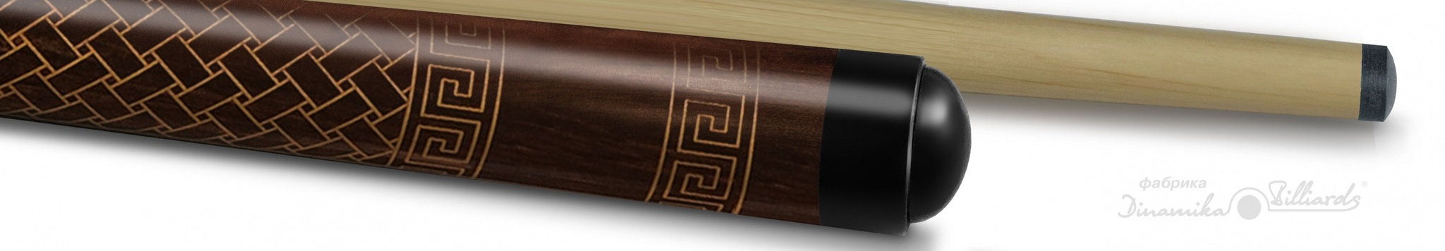 Для изготовления шафта практически во всех моделях бильярдных киев используется только высококачественный граб. Это жесткое по структуре и в то же время эластичное дерево идеальным образом подходит для изготовления данной части инструмента. Материалы, используемые для турняков, довольно разнообразны. В отделке дорогих моделей применяются ценные породы дерева – палисандр, венге и эбен. Для серийных моделей используются такие классические сорта как амарант, падук, лайсвуд, ятоба, «черный граб». В двусоставных киях установлены специальные замки из прочного полимерного материала – собственная разработка Фабрики. Соединяя турняк и шафт, эта деталь обеспечивает идеальную скрутку, а также участвует в процессе замедления энергии, гася колебания, идущие в тыльную часть турняка, где уже находится груз. Использование цельного лепестка без склейки в построении кия обеспечивает стабильность, прочность, устойчивость изделия к искривлению.