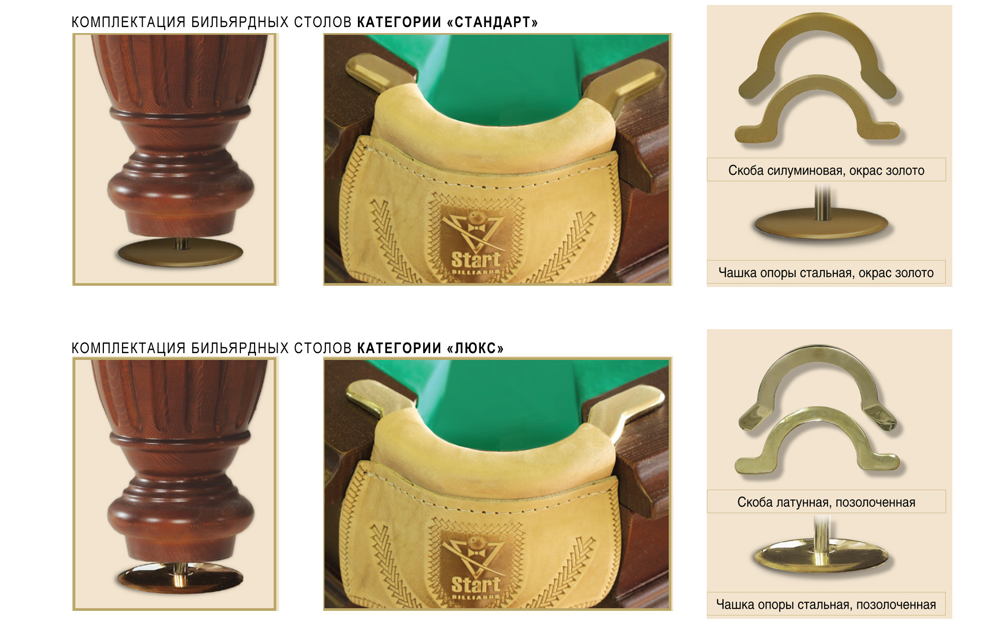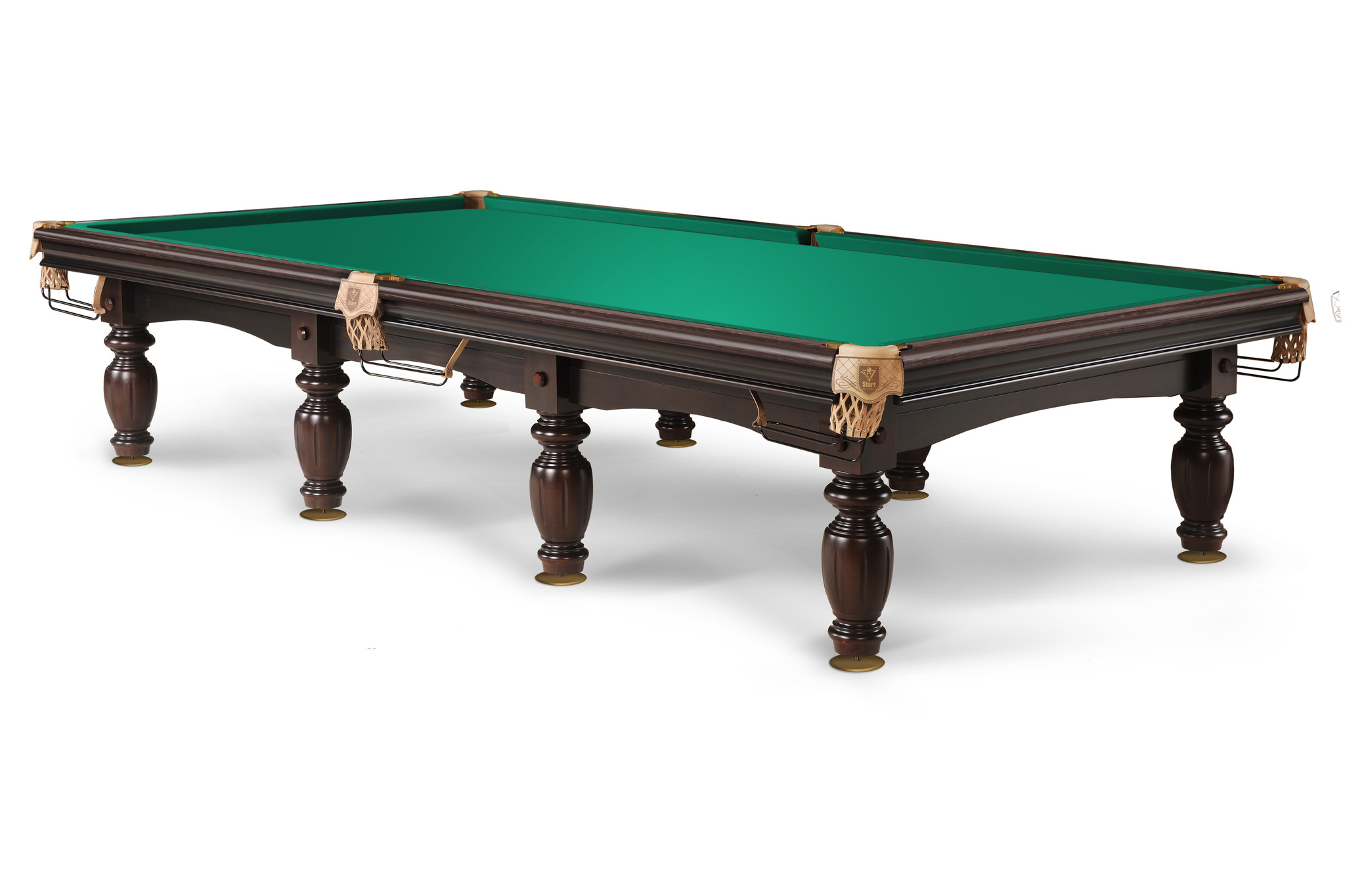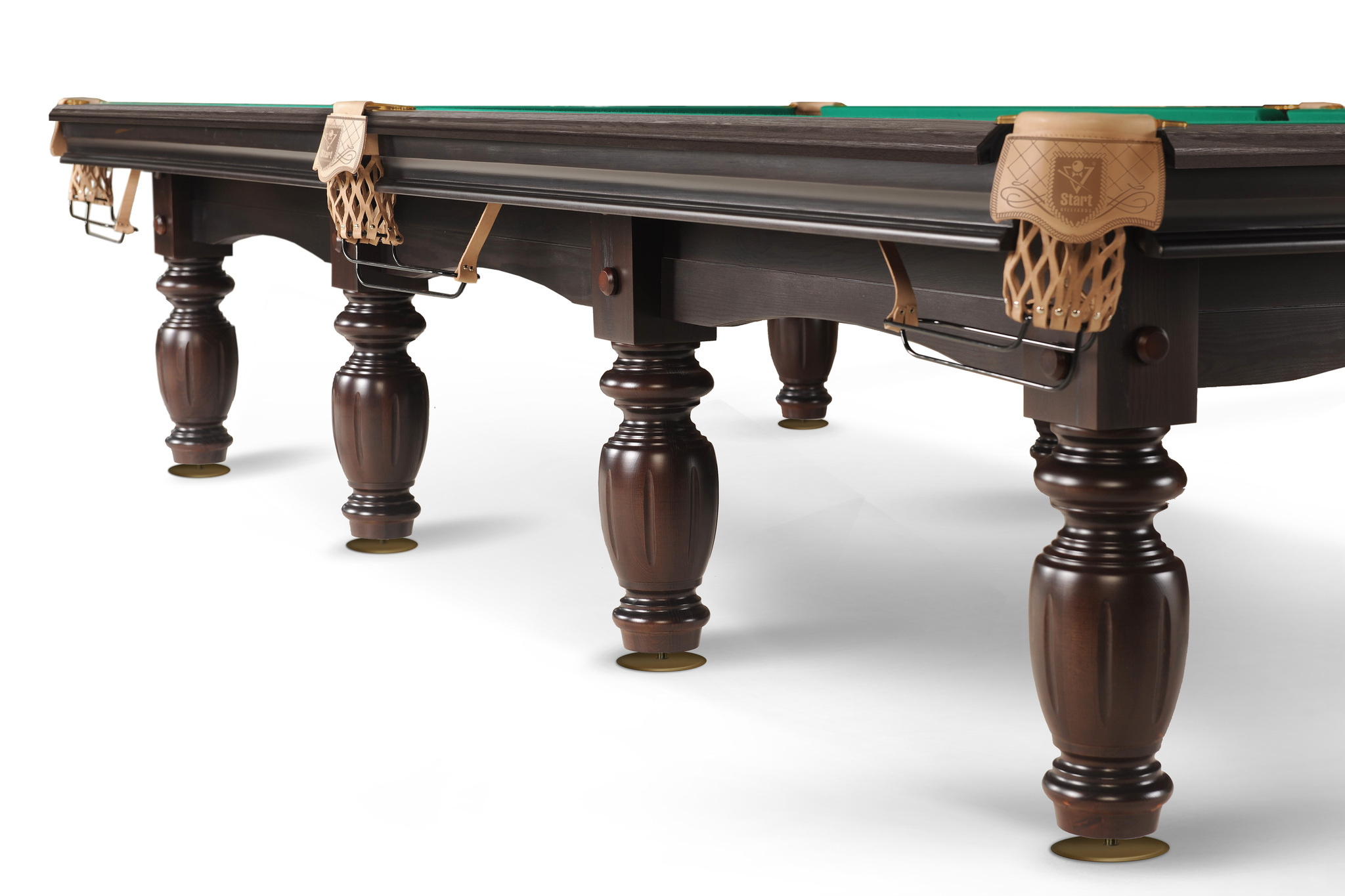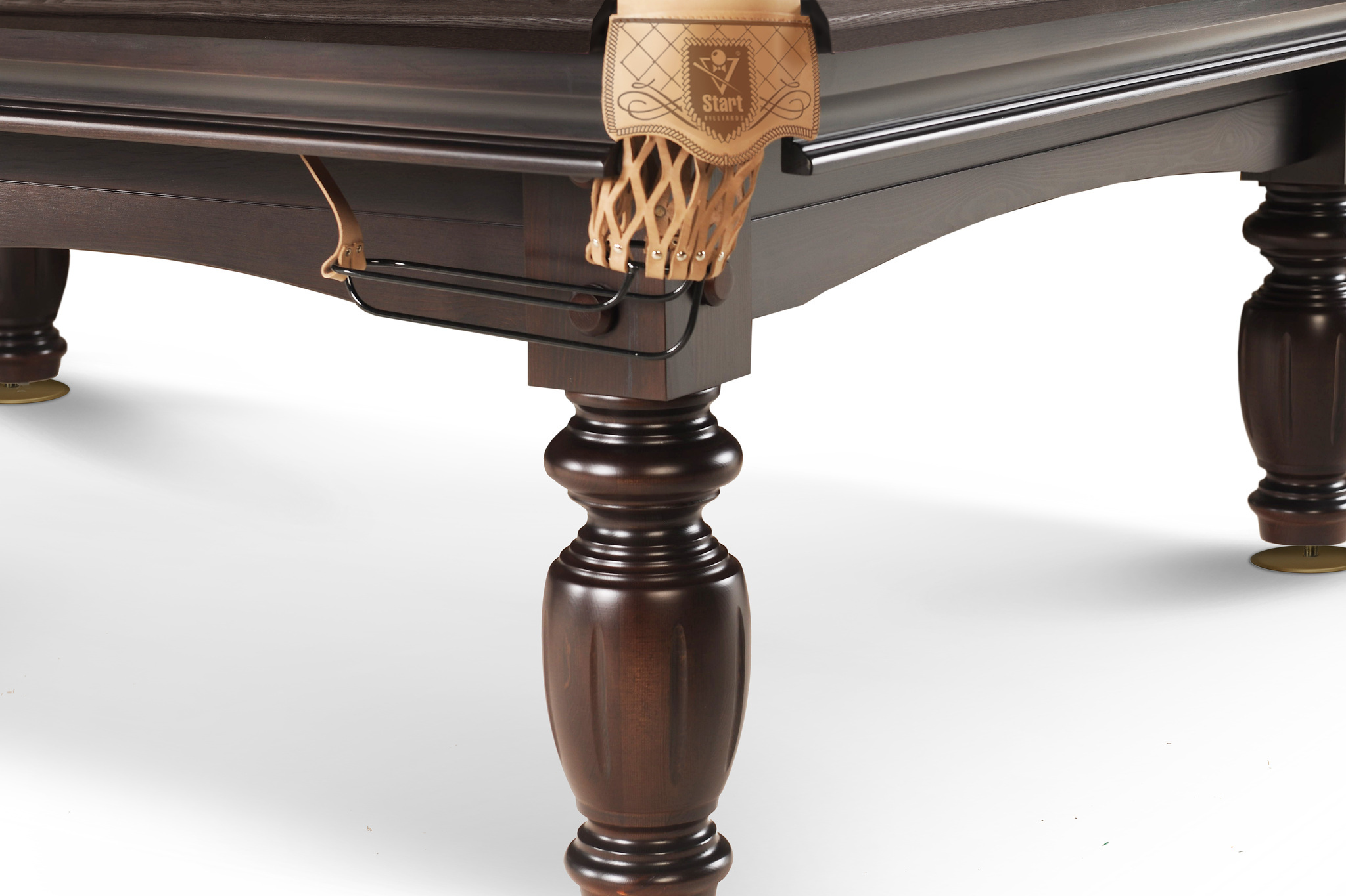 Столы «Арсенал» - официальные столы турнира за звание «Абсолютного чемпиона мира по пирамиде». Бильярдный стол «Арсенал II» отвечает всем требованиям, предъявляемым к профессиональным столам для бильярда. В его конструкции применены новейшие технологии изготовления, которые до совершенства отработаны Фабрикой «Старт» и проверены временем. Стол одновременно сочетает достойное качество, органичный дизайн и оптимальную цену. Изготовлен из натурального дерева береза /сосна. Шульцевское крепление ног обеспечивает столу высокую устойчивость. Система плавающих гаек в вертикальном креплении бортов позволяет идеальным образом крепить борт к плите. Благодаря этой уникальной технологии борт и плита становятся единым монолитом. Профессиональные амортизаторы бортов Start Super Pro на долгие годы гарантируют отличный отскок шара. Основа игрового поля может быть выполнена из природного сланца ORERO или камня SUPER STONE. Модель стола имеет два вида комплектации, отличающихся чашками опор и скобами луз.