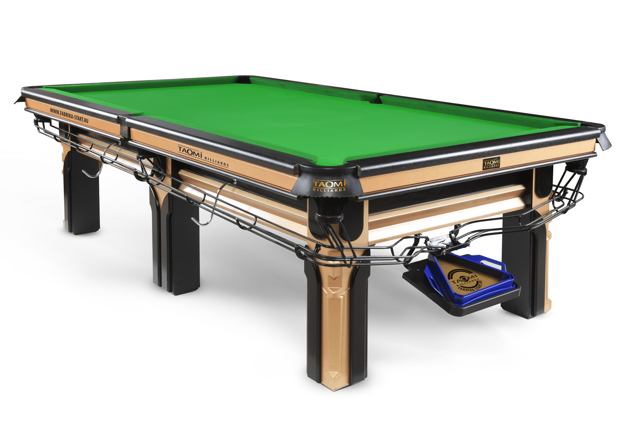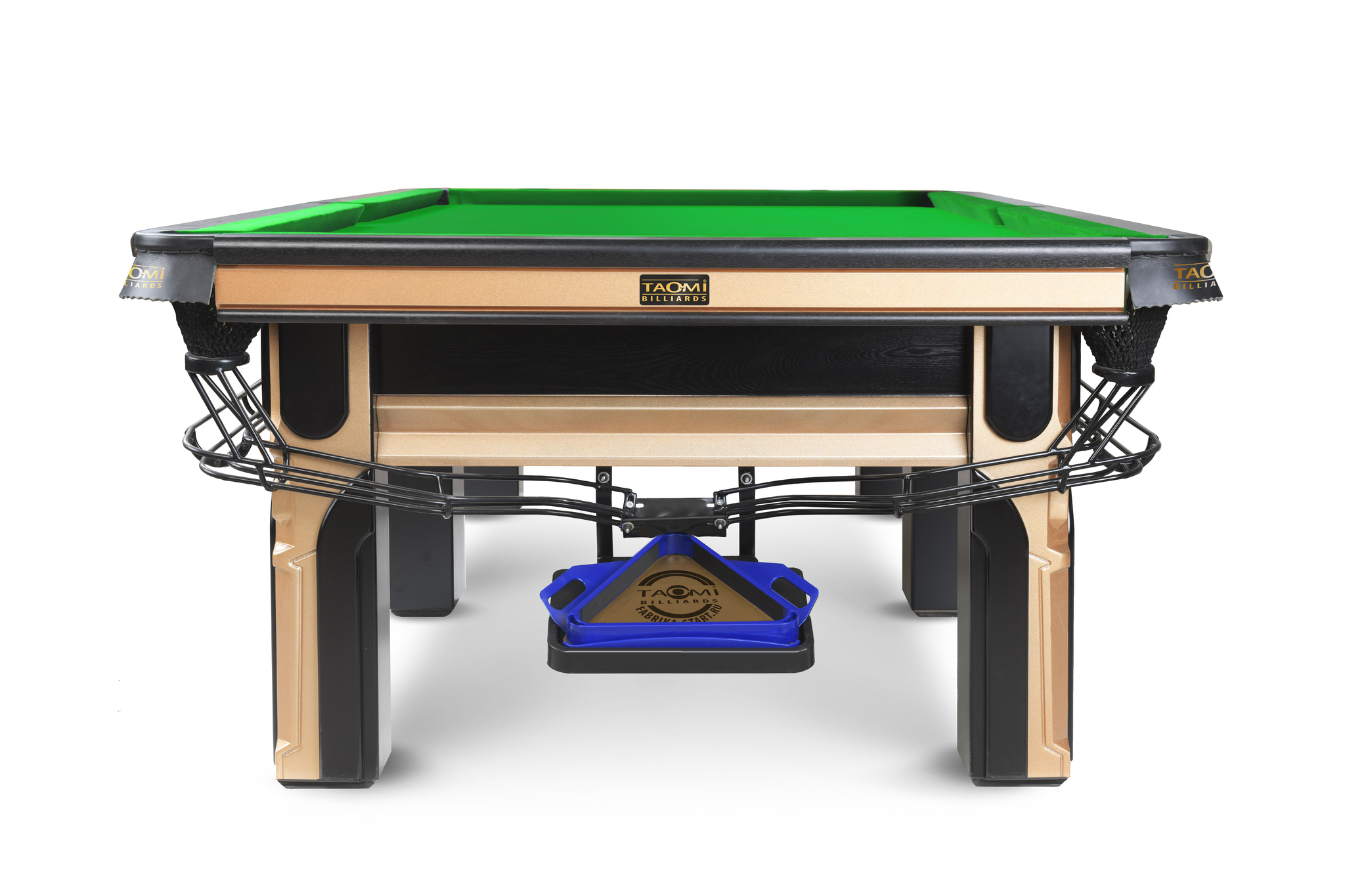 Китайский пул отличается особой эстетикой и стилем. Игровые столы выделяются изысканным дизайном и высоким качеством, делая игру не только захватывающей, но и эстетически приятной. Стол TAO-MI Model 1 (К5) выполнен в сочетании золотистого цвета и черных элементов, придающих ему изысканный и дорогой внешний вид.