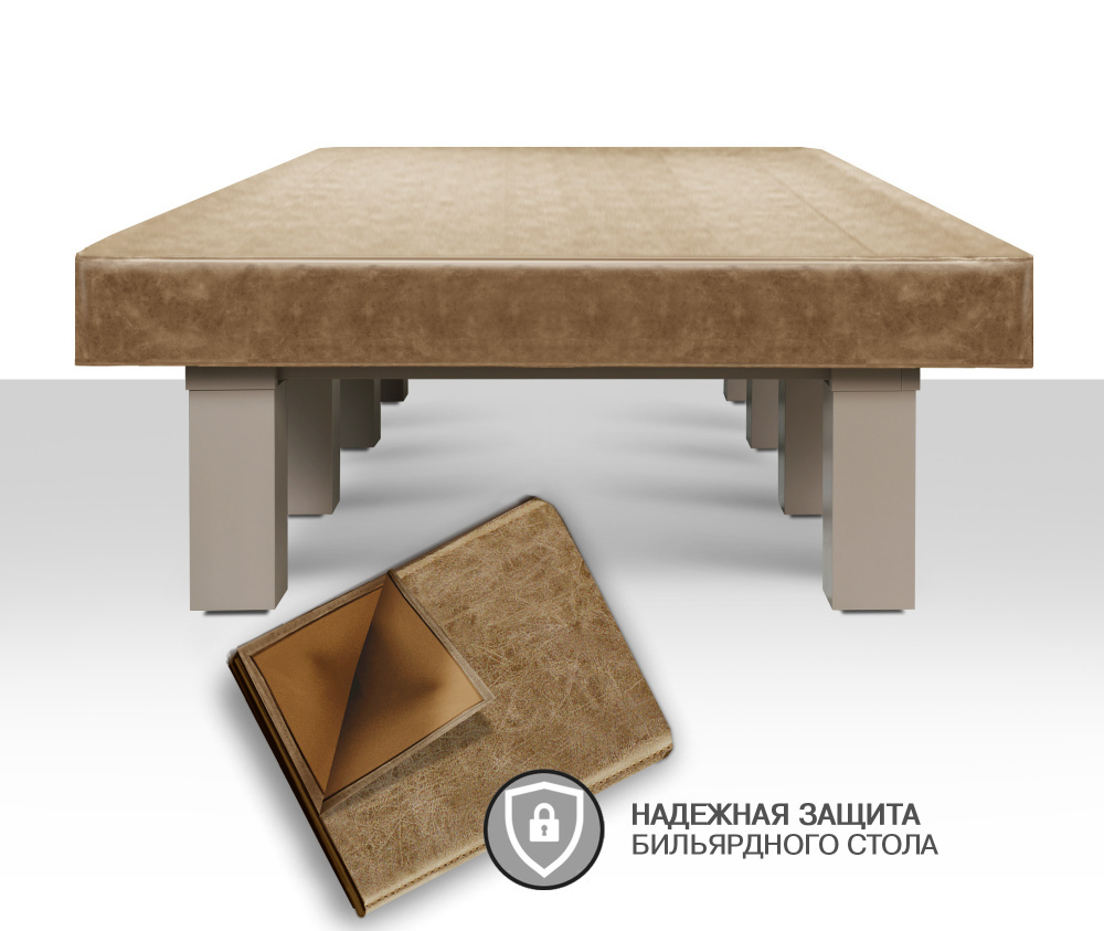 Чехол для бильярдных столов из плотной экокожи высокого качества обеспечивает надежную защиту от пыли, влаги, солнечного света и случайных царапин в перерывах между играми. Благодаря этому чехлу сукно не выгорает на солнце, и необходимость частой чистки поверхности стола от пыли значительно уменьшается. Это позволяет сукну сохранять свои свойства на более длительный срок. Чехол представляет собой идеальное сочетание стиля и функциональности. Специально разработанный для бильярдного стола SOHO чехол обеспечивает идеальную защиту поверхности, надежно закрывая борта и лузы. Также одним из главных достоинств данного чехла является его стильный и элегантный дизайн. Он способен подчеркнуть изысканный вкус владельца, добавляя нотку утонченности в обстановку. Чехлы представлены в двух классических цветах: бежевый и серый. Это универсальные цвета, которые легко впишутся в любой стиль интерьера. Такой чехол станет гармоничным дополнением к интерьеру любой бильярдной комнаты, создавая атмосферу уюта и роскоши. Материал чехла не требует особого ухода. Достаточно периодически аккуратно очищать от пыли влажной тканью, что делает его использование еще более удобным. Чехол станет незаменимым аксессуаром для любого владельца бильярдного стола, обеспечивая не только защиту, но и добавляя эстетическую привлекательность вашему игровому пространству.