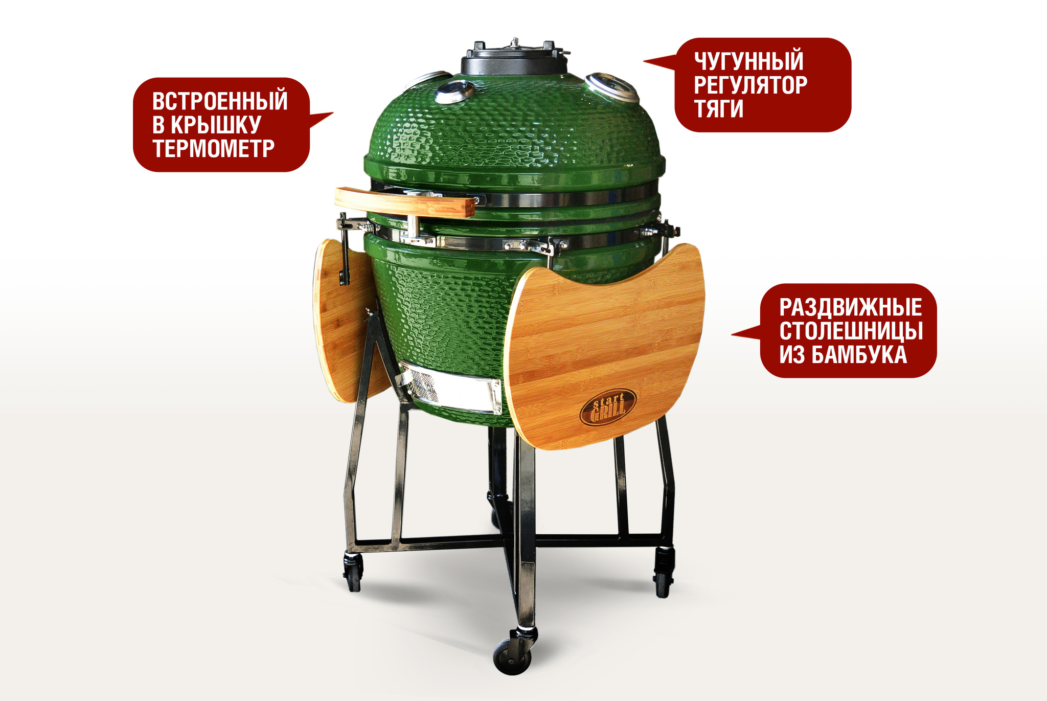 Керамический гриль-барбекю с окошком 22 дюйма (зеленый) (57см)