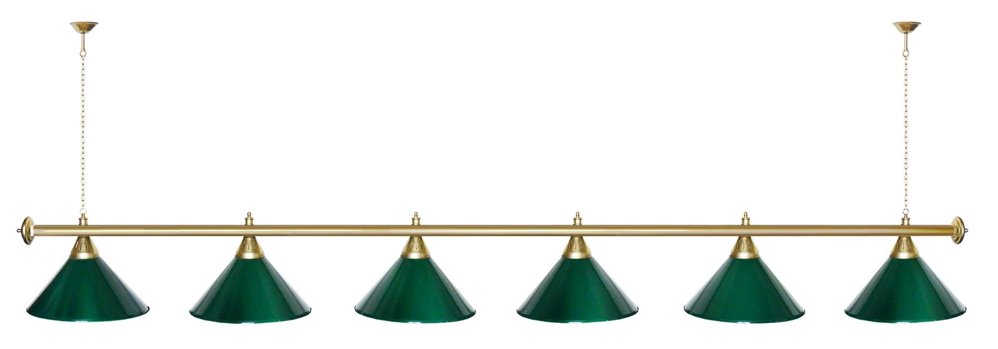 Лампа STARTBILLIARDS 6 пл. (плафоны зеленые,штанга зеленая,фурнитура золото)