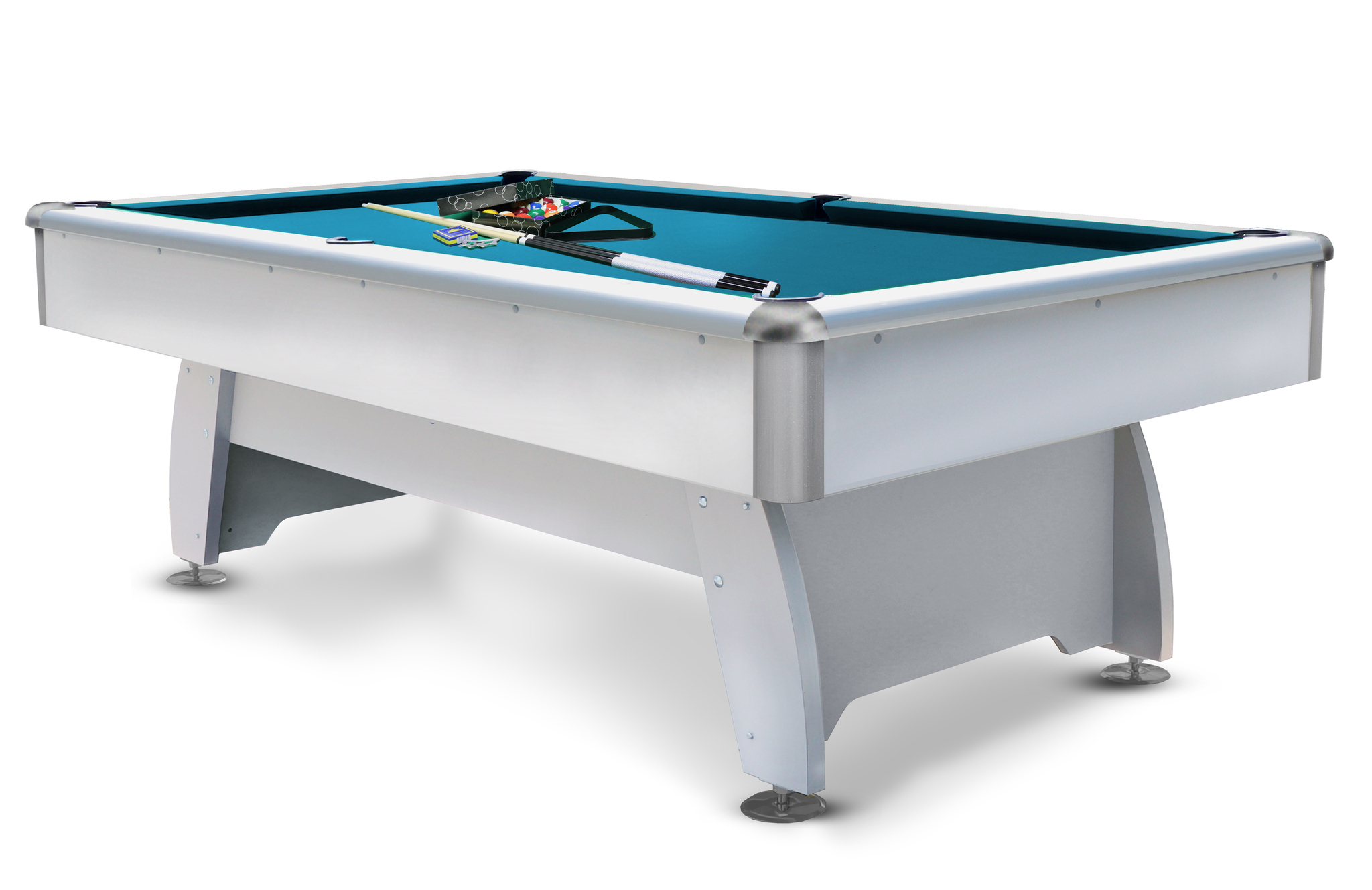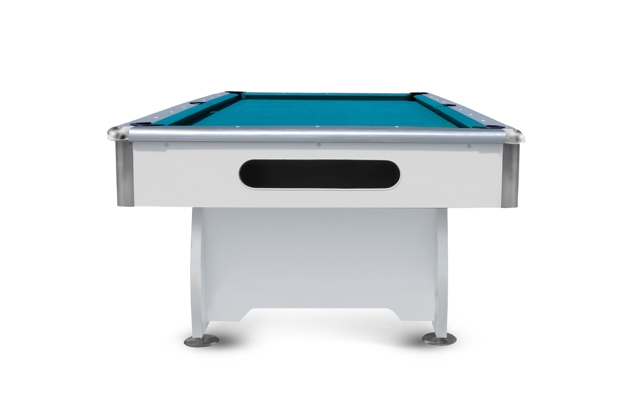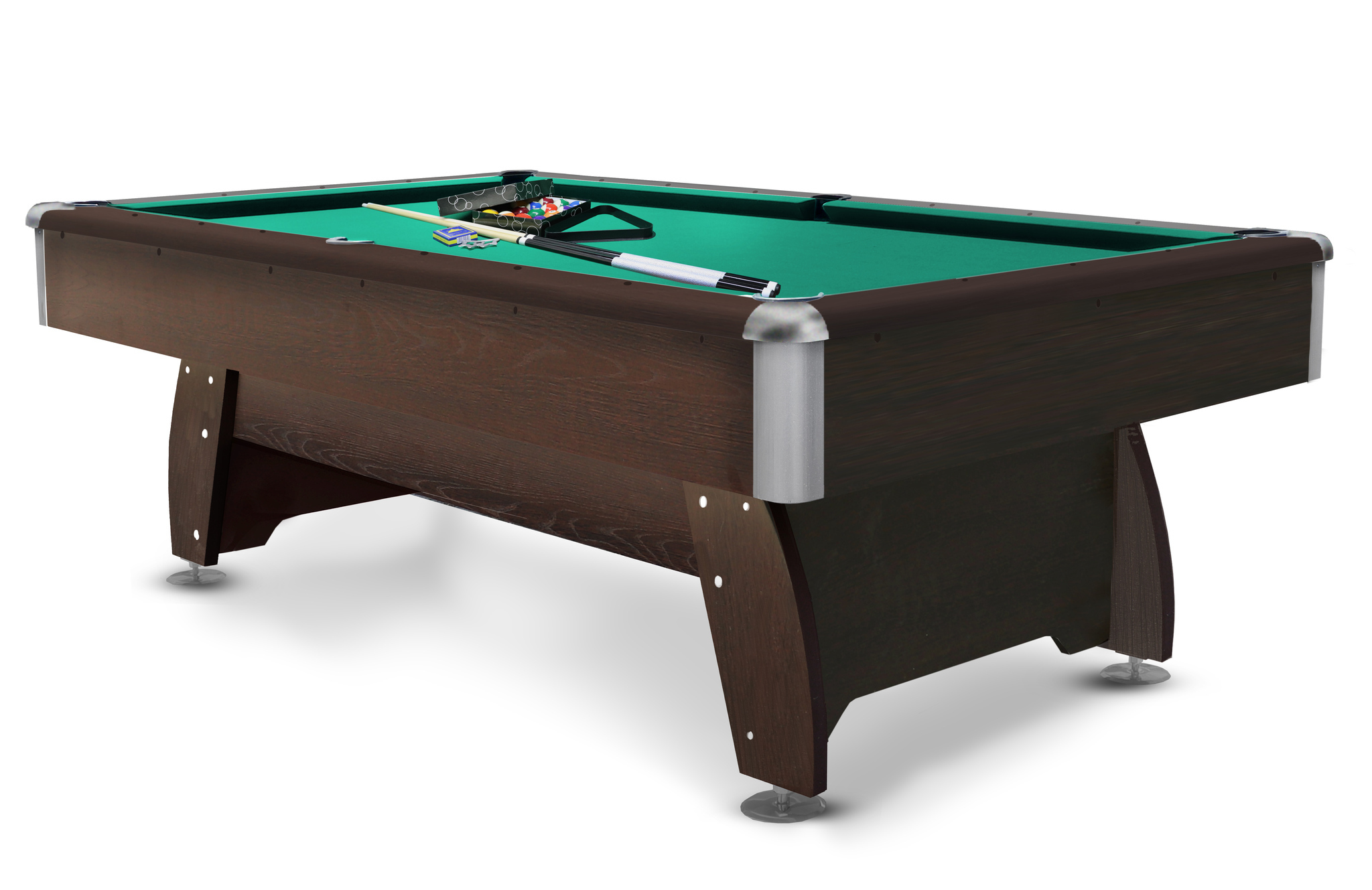 Конструкция стола выполнена из МДФ и ЛДСП, оснащена основательным лафетом, имеет усиленную несущею раму, повышенную статичность и жесткость, максимально приближенную к профессиональному уровню. Модель с системой ската шаров. Основа игрового поля может комплектоваться натуральным сланцем, камнем PBS или камнем Super Stone.