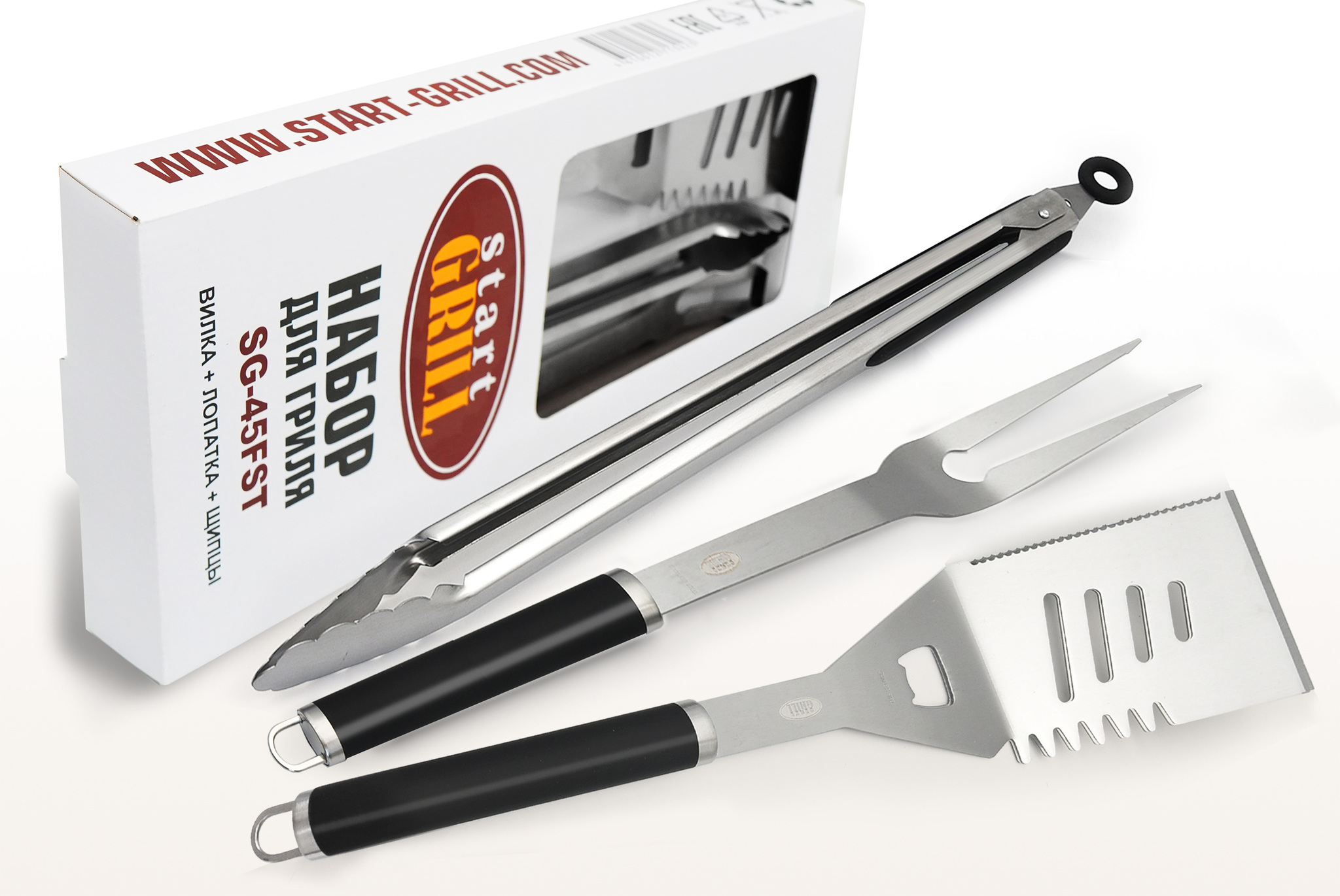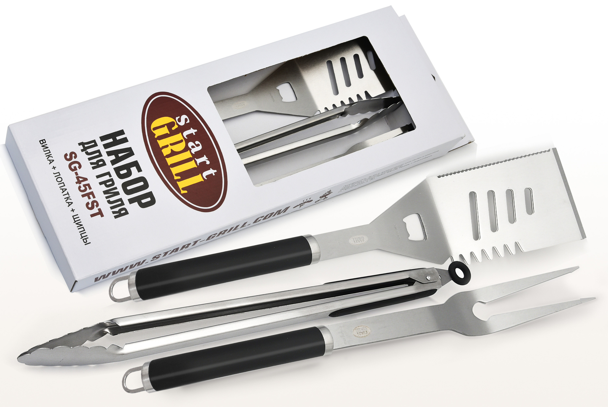 Для любителей устраивать пикники на природе и готовить отличные блюда - набор для гриля от Start Grill станет незаменимым и полезным приобретением. Практичный набор инструментов состоит из 3 предметов: вилка, щипцы и лопатка. Предназначен для удобного переворачивания продуктов. Небольшого размера, из нержавеющей стали, с ручками из термопластичной резины,что позволит не получить ожёгов во время приготовления еды.