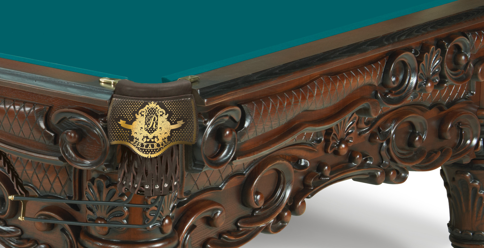 В конструкции стола используется уникальная разработка Фабрики «Старт» – эксклюзивная металлическая рама. Такой конструкторский прием обеспечивает непревзойденную жесткость и высокие игровые качества бильярдного стола.