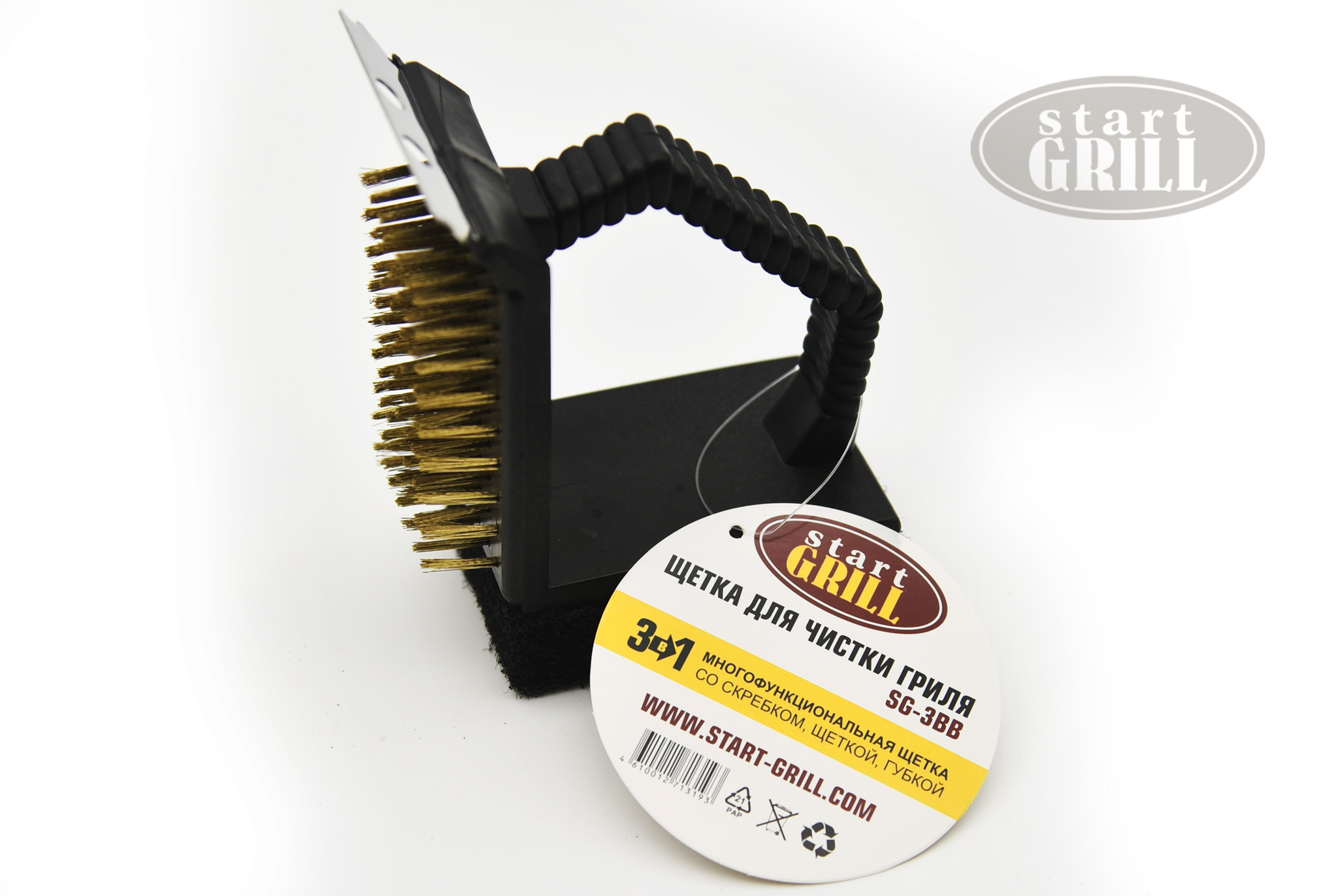 Щетка для чистки гриля 3 в 1 от Start Grillnbsp;nbsp;состоит из трех частей: щетка с губкой для легкой очистки пыли и сажи, щетки средней жесткости для более интенсивной очистки гриля, и скребка, который с легкостью справится с въевшимися жиром и грязью. Используется для чистки грилей, барбекю, мангалов.