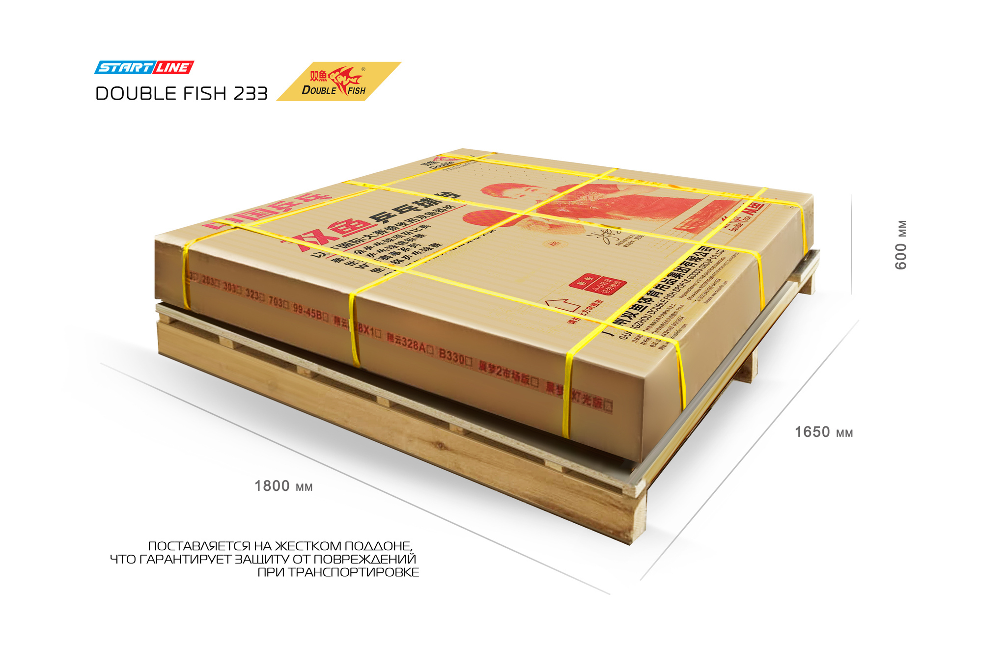 Double Fish 233 – теннисный стол мирового уровня. Официальный стол крупнейших турниров по настольному теннису: - ITTF World Tour в 2018-2020; - XIV Всекитайские игры по настольномуnbsp;nbsp;теннису-2021; - Chinanbsp;nbsp;Open #40;Открытый чемпионат Китая по теннису#41;; - Hongkongnbsp;nbsp;Open #40;Открытый чемпионат Гонконга по теннису#41;; - Australia Open #40;Открытый чемпионат Австралии по теннису#41;; - Grand finals. Double Fish 233 представлен эксклюзивно Start Line на территории России и стран СНГ. Double Fish 233 – теннисный стол с мировым именем от ведущего производителя оборудования для настольного тенниса. Крепкое сотрудничество Start Line и Double Fish позволило сегодня представить эту уникальную модель на российском рынке и среди стран СНГ. Высочайшие игровые характеристики ставят стол Double Fish 233 на одно из самых почетных мест среди «мировых профессионалов». Теннисный стол Double Fish 233 сертифицирован Международной федерацией настольного тенниса #40;ITTF#41;. Его размеры, параметры и характеристики находятся в строгом соответствии с требованиями ITTF. Уникальной особенностью модели является десятислойная УФ покраска столешницы. Именно так достигается нужное качество игровой поверхности с отскоком в 23,8 см. Многоуровневая покраска также безупречно защищает стол во время турнирного интенсива. Легкая и удобная настройка рабочей позиции теннисного стола обеспечивается при помощи регулировки боковых опор и всех поворотных колес. Надежная фиксация всех точек опоры позволяет выставить строго горизонтальный уровень стола на любой поверхности. Модель обладает исключительной устойчивостью и прочностью. Восемь обрезиненных транспортировочных колес обеспечивают легкость перемещения стола. Колеса оснащены стопорами, которые задают жесткую фиксацию нужного положения и фиксируют стол во время игры. Теннисный стол Double Fish 233 отличает комфортная и безопасная система складывания. Модель в сложенном виде очень компактна, что дает важные эксплуатационные преимущества: минимум места в положении хранения и удобство манипуляций при транспортировке. Теннисный стол Double Fish 233 не требует сборки. Модель поставляется в собранном виде, необходим только монтаж опор и транспортировочных колес. Стильный и лаконичный дизайн теннисного стола является еще одним преимуществом модели Double Fish 233. Теннисный стол Double Fish 233 по праву причислен к элитарному оборудованию с мировым именем. Модель станет лучшим вариантом для комплектации клубов, размещения в тренировочном зале и оснащения высокоуровневых турниров.
