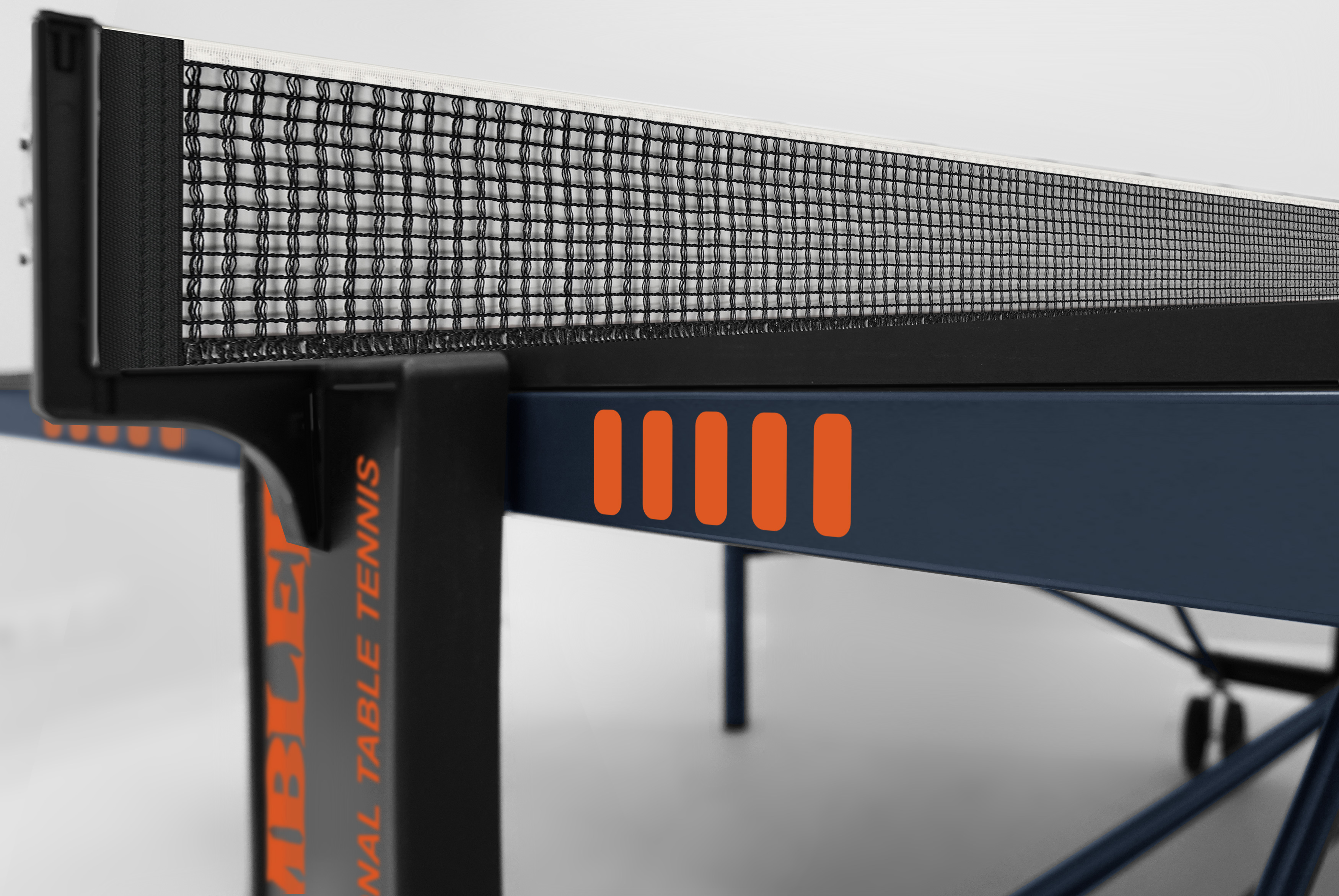 Стол укомплектован удобной и надежной встроенной сеткой, готовой к игре сразу после распаковки. Накладки на боковых поверхностях основания стола позволяют разместить необходимые для игры аксессуары.