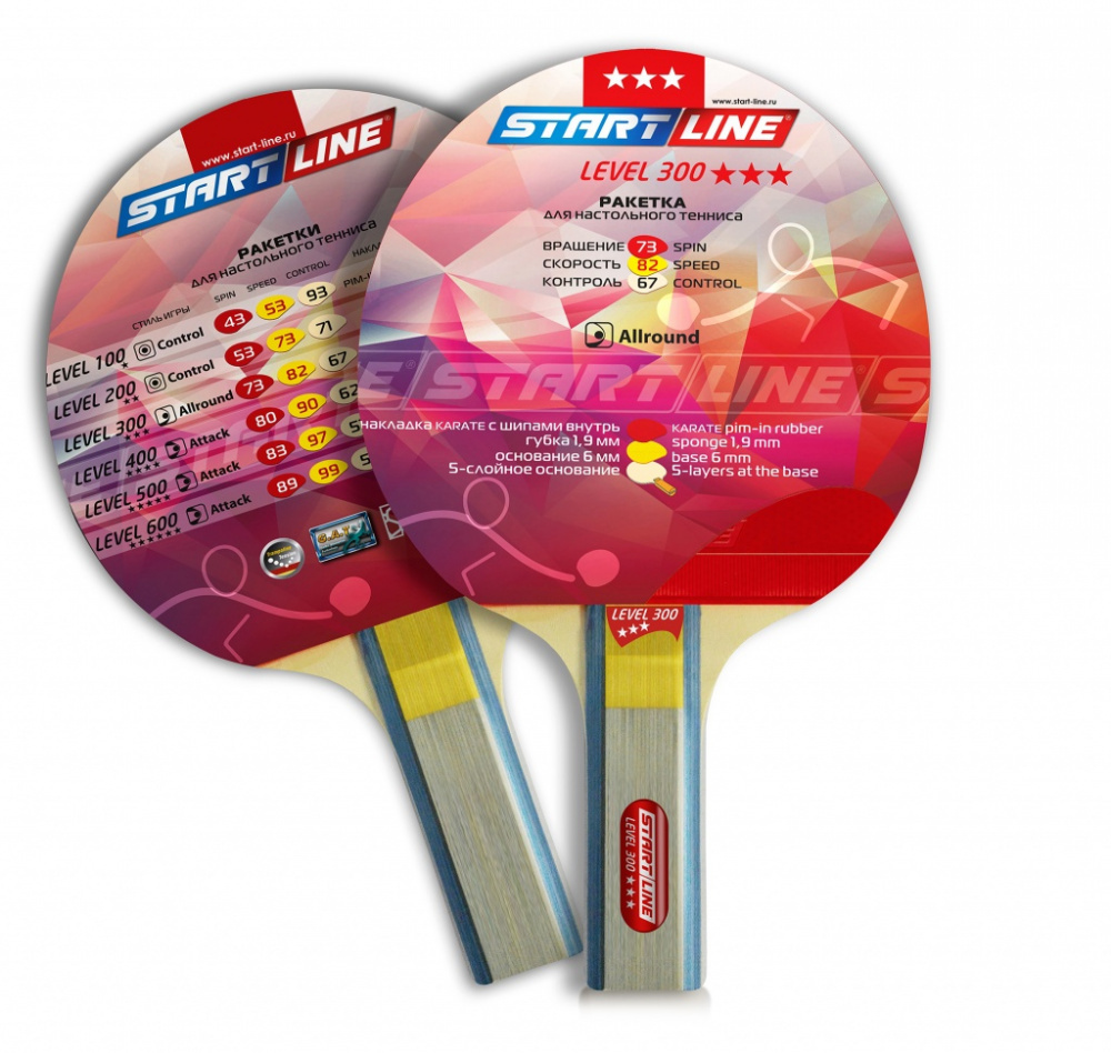 Ракетка для настольного тенниса Level 300 соответствует высокому современному стандарту качества, имеет обновленный дизайн, а также улучшенные технологические и игровые характеристики. В производстве ракеток Level 300 применены новейшие технологии: - Технология натяжения - Trampoline Tension Technology Уникальная технология, которая делает резину и губку с высоким натяжением. При игре резина хорошо поглощает атакующие удары мячей. Данный вид резины содержит натуральные органические вещества. - Технология поглощения - Gecko Adsorption Technology Эту технологию применяют при производстве резиновой поверхности ракетки. Так, на самой поверхности резины образуется множество выходных отверстие #40;как губка#41;, которые позволяют задержать мячи на резине. Благодаря этой технологии можно свободно контролировать мяч, его скорость и вращение. - Технология симметрии - Symmetrical Microcellular Foam Technology. Благодаряnbsp;nbsp;применению симметричного мелкопористого пенопласта, ракетка отличается эластичностью, легкостью и хорошим энергопоглощением.