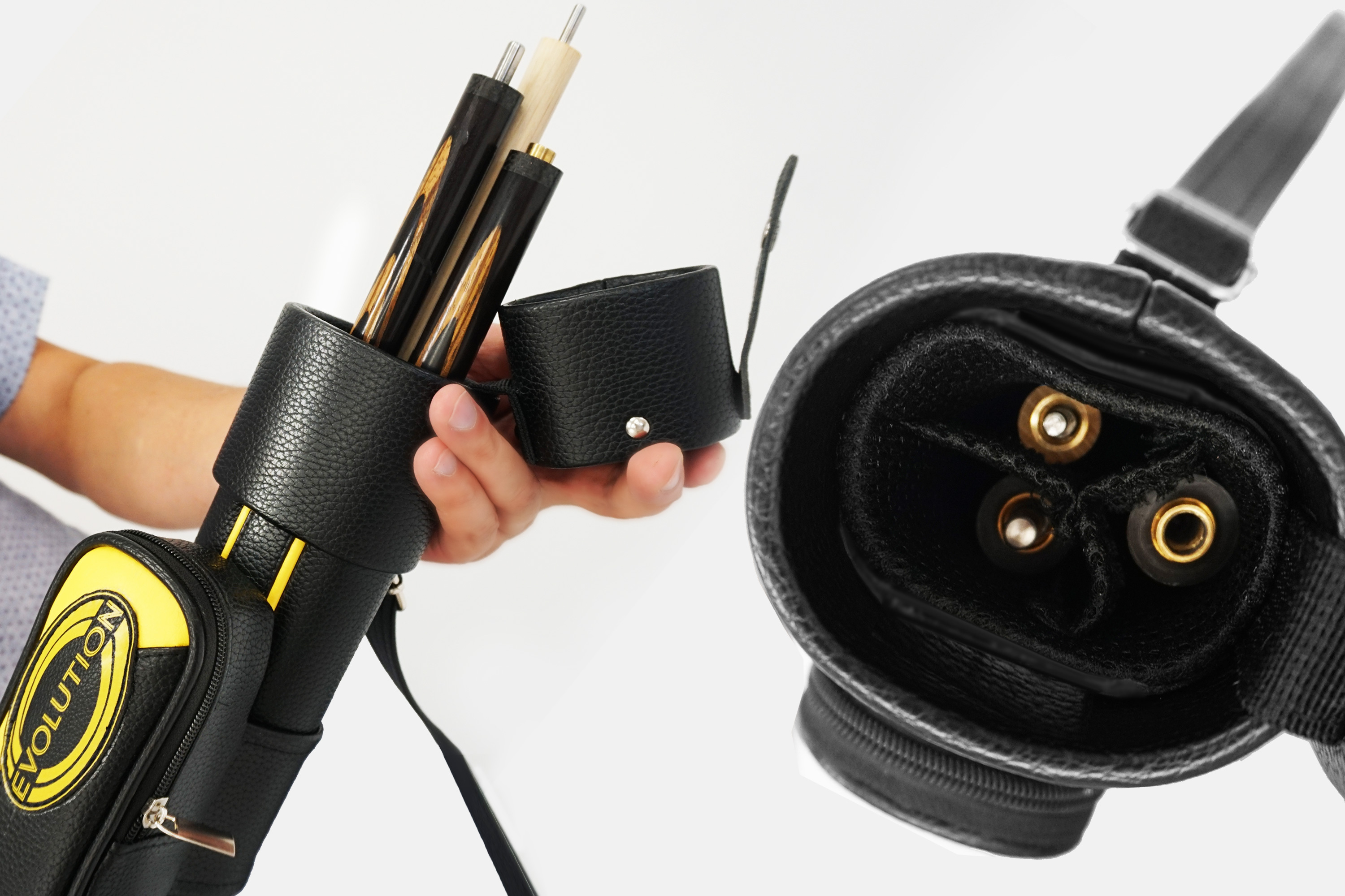 Тубус EVOLUTION CLUB предназначен для безопасного хранения и транспортировки одного трехсоставного кия. Жесткий корпус надежно защитит кий от повреждений и влаги, а яркий дизайн станет стильным дополнением образа спортсмена. Отличительной особенностью данной модели является его миниатюрный размер - в длину тубус всего лишь - 65 см. Секция для хранения кия разделена на три части мягкой перегородкой, защищающей инструмент от каких-либо повреждений. На тубусе имеется вместительный карман с застежкой молния для бильярдных аксессуаров и эргономичная ручка и регулируемый наплечный ремень для удобно транспортировки. Тубус выполнен из высококачественной износостойкой экокожи в двухцветной комбинации.
