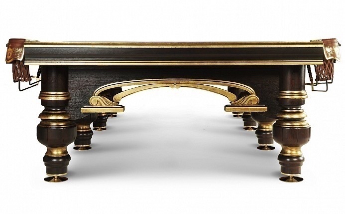 Представитель роскошной элегантности галереи эксклюзивных шедевров «Старт». Стилистика стола «Венеция-Люкс» отражает образ одноименного города, с его пышной архитектурой Эпохи Возрождения. Модель отличает особая роскошь отделки: золотая поталь украшает резной лафет ручной работы и элементы ног, тем самым делает силуэт бильярда выразительным и ярким.